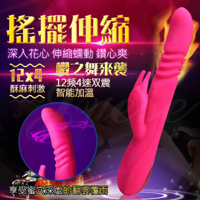 櫻之舞是YEAIN重點推薦的新品裡的一款伸縮加溫雙震搖擺集於一身的全能型震動棒,又一次將震動棒推向新的技術領域,我們不斷的研究和嘗試,使其人體工學更貼近人體舒適性,入體部份採用高科技矽膠材料。在俊美的外形後面隱藏著非凡的功能,伸縮和震模式任您選擇,它能夠加熱到與人體相接近的溫度,同時還能在性愛時不斷的伸縮運動雙馬達同時刺激G點和陰蒂,12種震動頻率和4種伸縮速度,讓您盡情領略不同的高潮快感,欲罷不能,快來一起體驗吧!